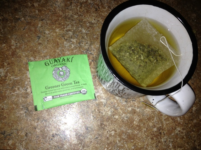 And Guayaki Organic Greener Green Tea. With a tbs of Horizons Organic Whole Milk,and a dash of cinnamon.